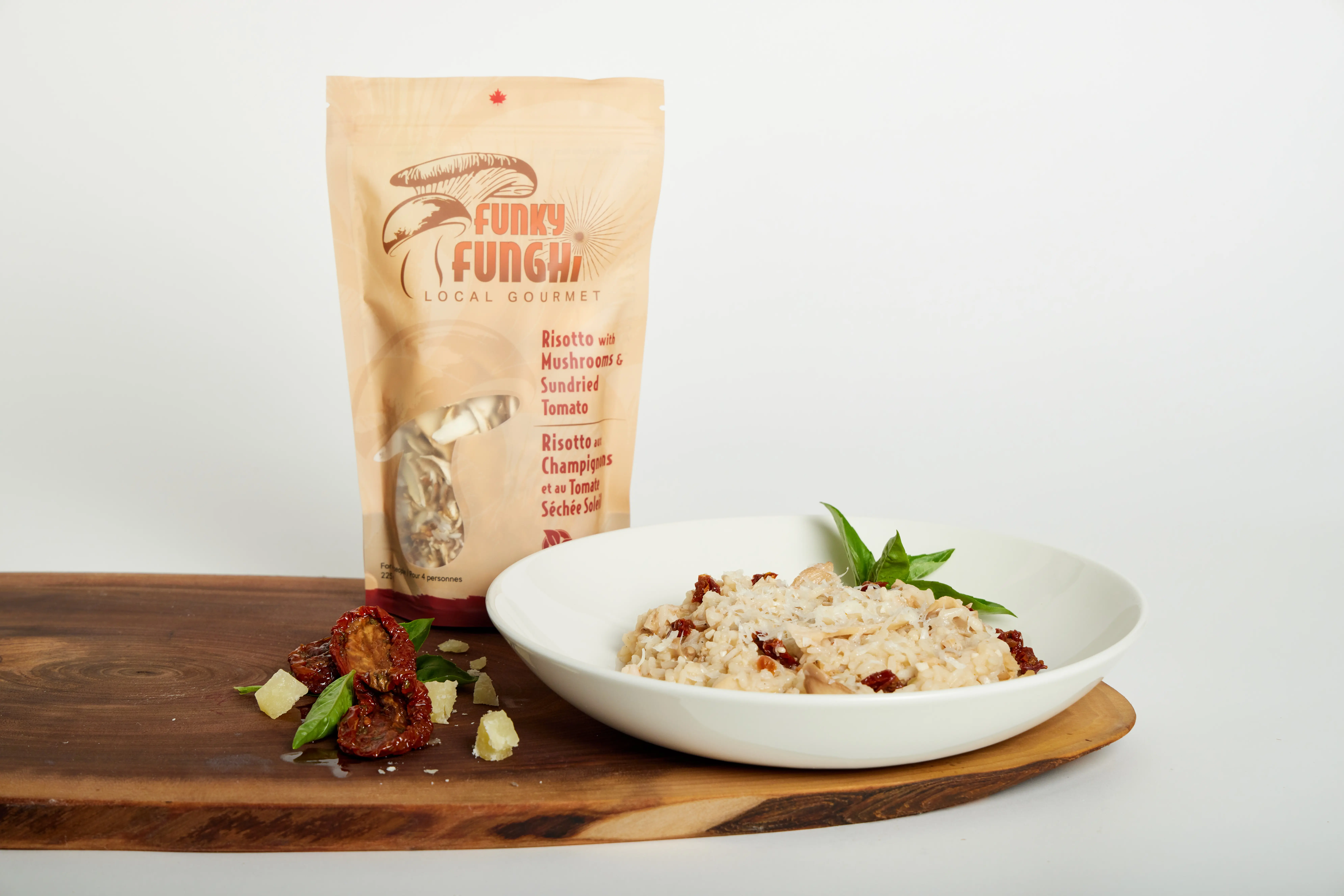 Mmmm Mushroom Risotto… The key to making our Risotto “just right” is starting with the best ingredients. Arborio rice, organic herbs & spices and Oyster mushrooms from the Funky Farm. Just add a delicious stock and allow to simmer. In just a few minutes, your kitchen will be filled with the bold mouth watering aromas of a delicious Italian risotto.